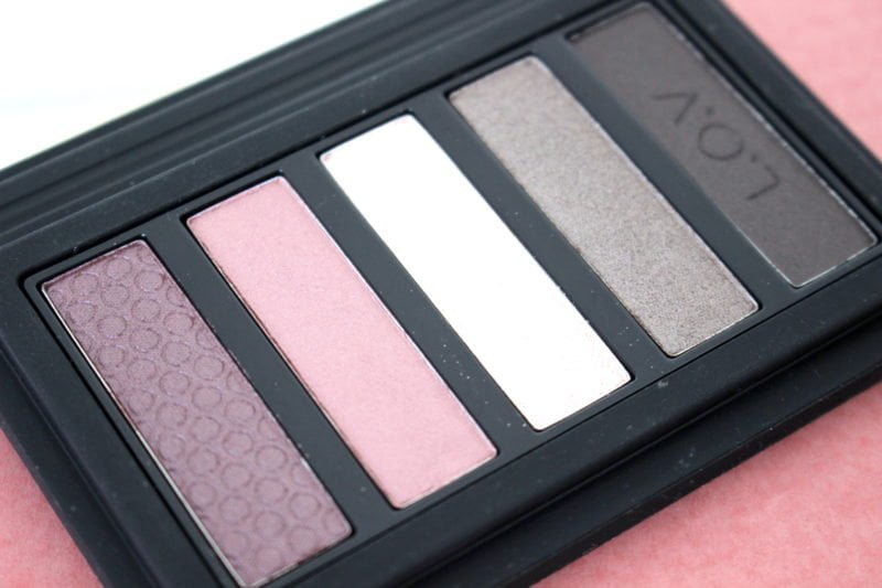 Dit oogschaduw palette zit in een heel mooi rubberen palette en heeft 5 kleuren die goed bij elkaar passen. In totaal zijn er 5 varianten en ik test 710 – Devoted to Roses. Fijn, want ik ben gek op dit soort tinten! Ik vind het heel goed dat er zowel een hele lichte kleur als een hele donkere kleur aanwezig is, daar is echt goed over nagedacht. Ook mooi dat er in de donkerste kleur nog de L.O.V. letters te zien zijn. Ook dit palette heeft over de hele grote van de deksel een spiegel. Dit soort formaatjes zijn heel prettig om mee te nemen. Enige minpunt is dat dat rubber aan de buitenkant een beetje viezig kan worden na verloop van tijd, maar daar kan ik wel mee leven. Het ziet er super mooi uit en het glijdt ook niet snel van je wastafel/kaptafel/hand hierdoor.