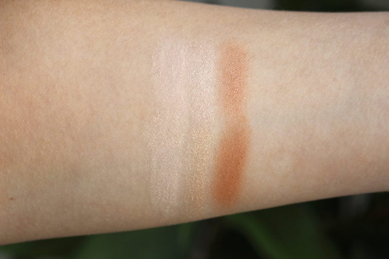 Op de een of andere manier pakte mijn camera de foto ook al warmer. De producten zijn zacht, en geven behoorlijk wat pigment af. Oppassen met je kwastje dus. Ik zie echt eruit heel veel verschil tussen de kleuren, wat ik wel had verwacht. Even op het gezicht bekijken.