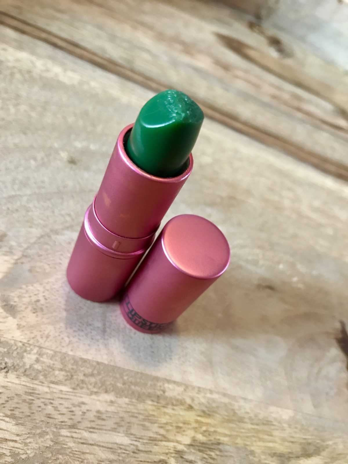 Dit is een full-size groene balsem lipstick die op de lippen transformeert naar een transparante rozen roze tint. De lipstick heeft een waarde van €23,45.