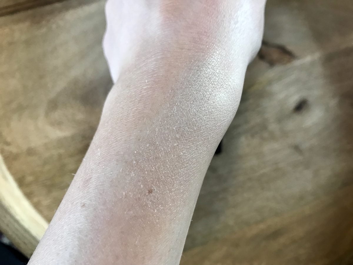 Nr 25. Op de huid is het weer parelmoer. Een mooie neutrale kleur die je eigenlijk overal wel bij kunt dragen. Het poeder is heel fijn, en het geeft en hele mooie glans.