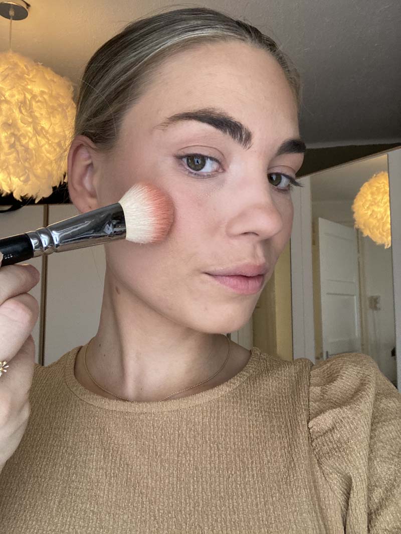 Ik gebruik voor het aanbrengen een Zoeva Luxe Cheek Finish. Hoewel het een hele fijne kwast is, ik gebruik hem niet voor niks al jaren en jaren, zou ik hem niet opnieuw kopen. Dit omdat hij gemaakt is van echte dierenharen, en daar zou ik nu niet opnieuw voor kiezen. Genoeg mooie synthetische opties op de markt, die overigens vaak ook langer mooi/schoon/heel blijven.