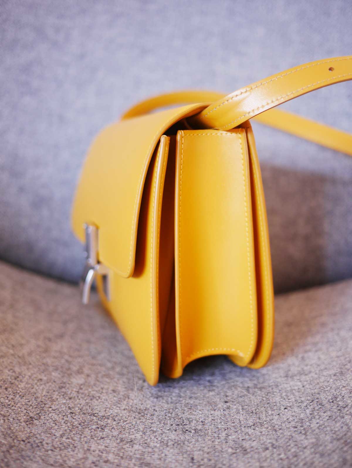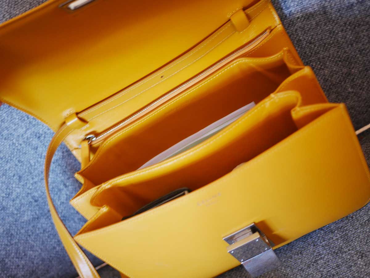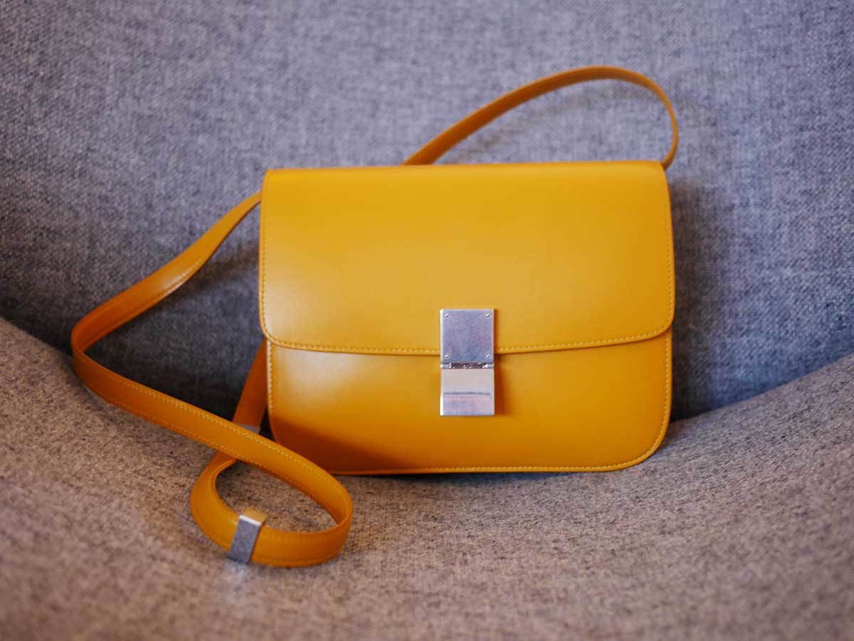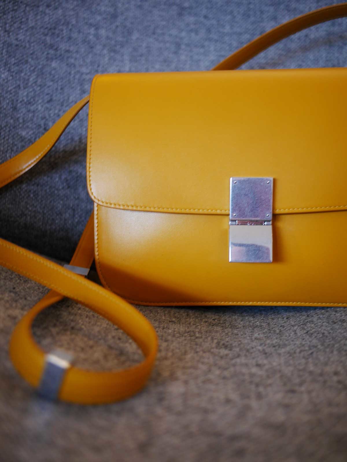 Wat dus wel bijzonder is, is dat deze tas uit de laatste collectie van Phoebe Philo is, die vertrekt als designer bij het merk. Hedi Slimane neemt het over en dus zullen de ontwerpen van het merk gaan veranderen. Waarschijnlijk zal de Classic Bag wel in de collectie blijven, maar voor zover ik weet is deze gele kleur een limited edition. Voor mij allemaal geen redenen om een tas wel of niet te kopen, maar toch leuk om te weten. Oh ja, de officiële naam is dus Céline Classic Bag, maar hij wordt ook wel ‘Box Bag’ genoemd vanwege de vorm.