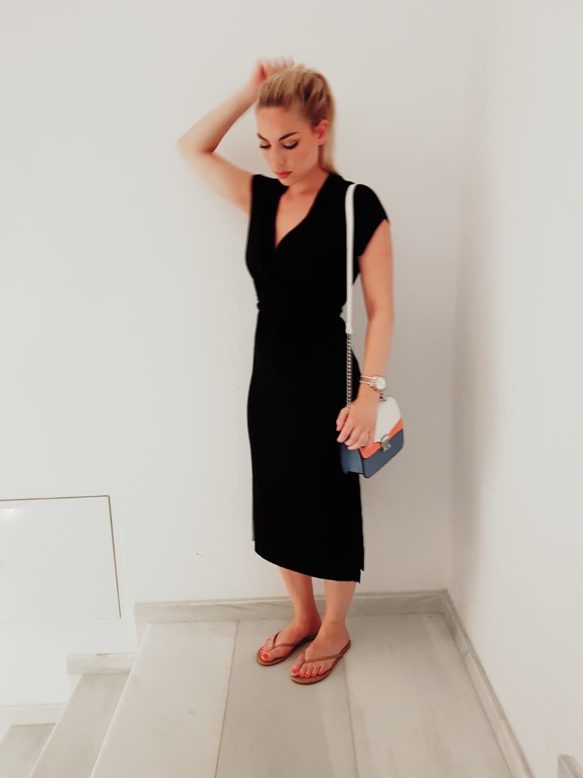Een zwarte jurk misstaat bijna nooit. Deze plissé jurk combineer ik heel graag met knalkleurige schoentjes, of zwarte platform puma’s als ik juist wat stoerder wil.