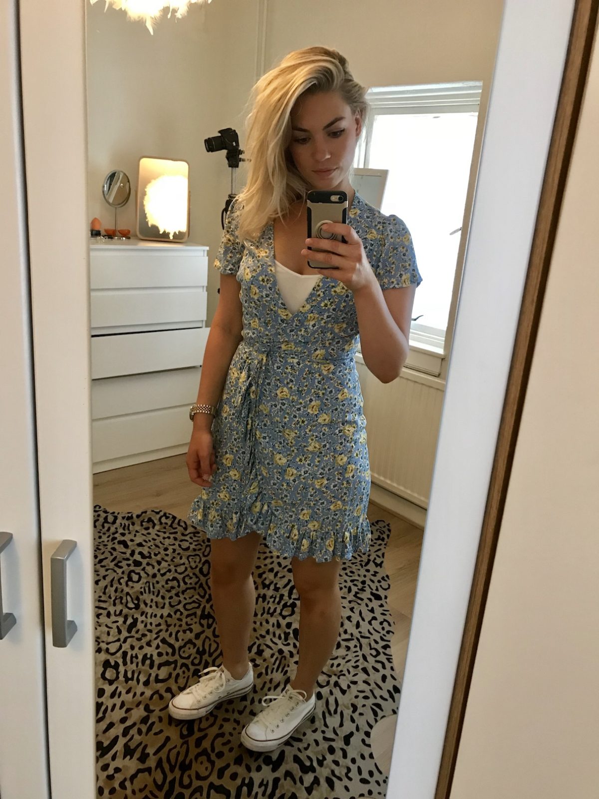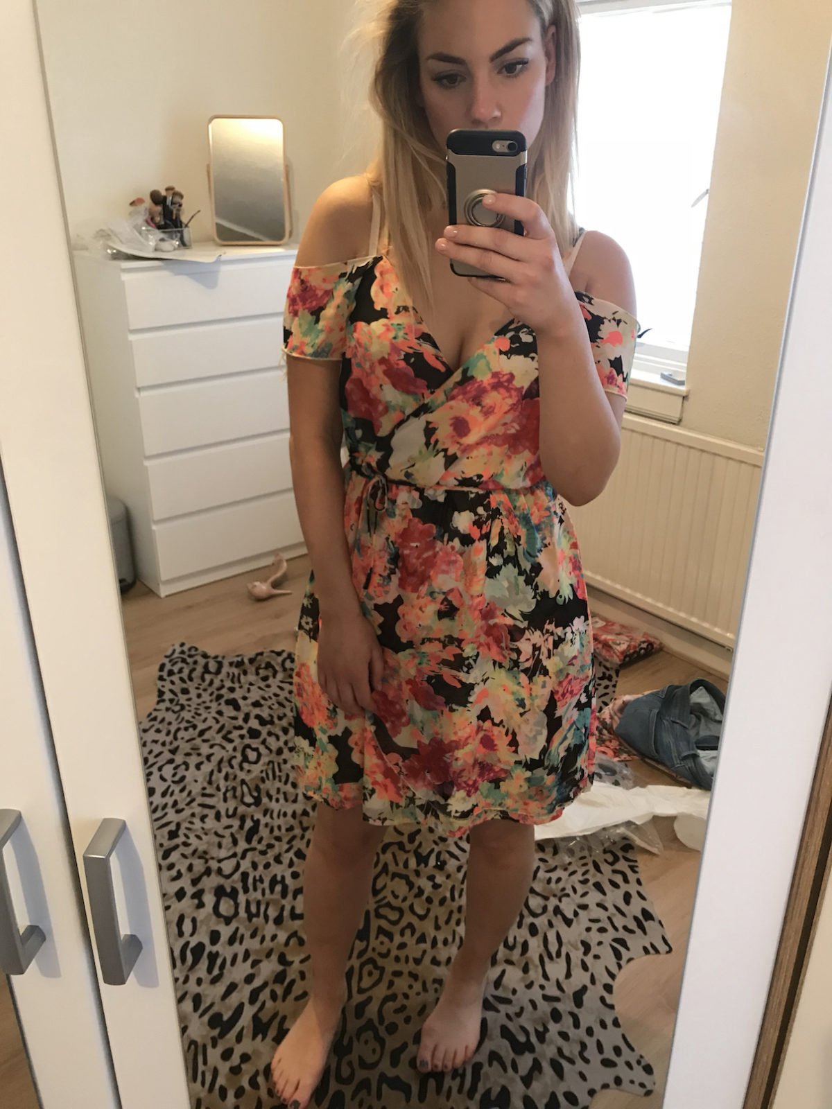 Deze foto nam ik toen ik een hele Asos bestelling aan het doorpassen was. Hij staat ook niet op Instagram, omdat de rommel op de achtergrond niet zo charmant is. Toch is het een leuk jurkje. Ik zoek jurkjes wel uit op een strakke taille, en wijdvallende rok. Een decoloté maakt het net wat spannender, maar door het model blijft het lief.
