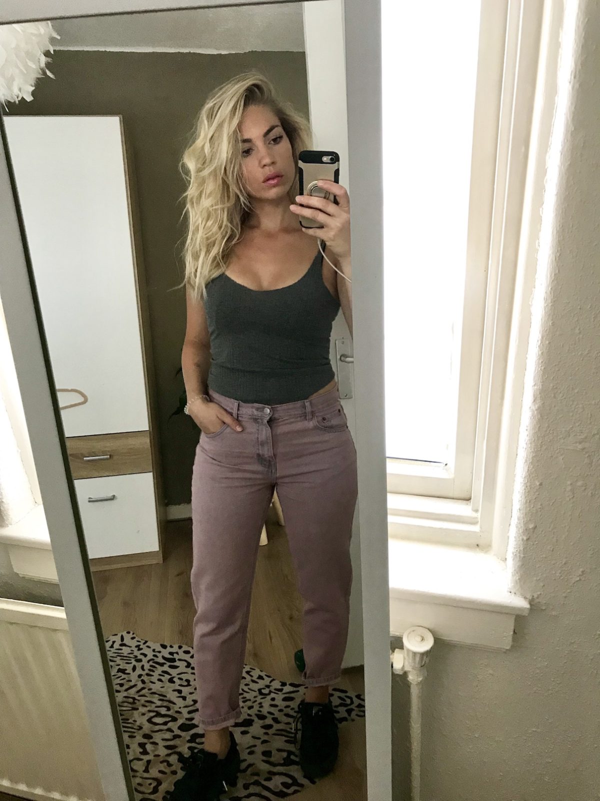 Eerste momjeans ooit! Ik compenseer zo’n wijdere (en vaak op de bilpartij niet persé flatterende) broek dan graag met een strak topje waardoor het toch vrowuelijk blijft. In dit geval ook best een beetje sexy, maar toch stoer.