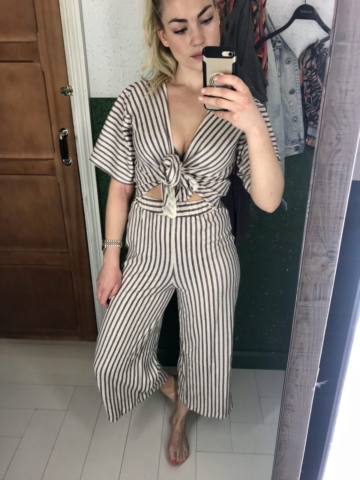 Deze jumpsuit heb ik zoveel aangehad en de stof blijft nog steeds mooi. De bandjes zijn verstelbaar waardoor je zelf enigszins controleert hoeveel inkijk je hebt. Het is lekker zomers, maar niet snel te naakt.