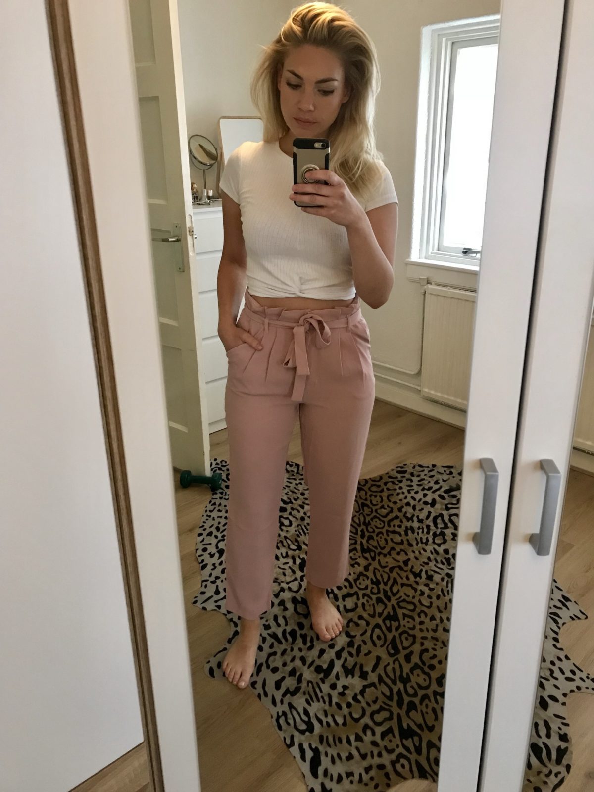 Oudroze is een kleur, maar wel een hele neutrale. Het valt gemakkelijk te combineren met andere kleuren, hoewel ik hier koos voor een simpele witte croptop.