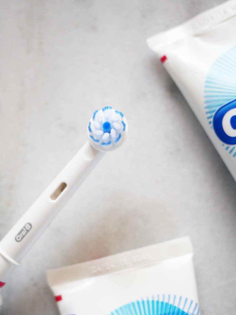Ik heb de nieuwe Oral-B Tandvlees & Glazuur Repair Tandpasta de laatste weken twee keer per dag gebruikt in combinatie met de Oral-B Sensi Ultrathin Opzetborstel, deze heeft ultradunne borstelharen. Deze zijn ongeveer zes keer dunner dan gewone handtandenborstelharen, dit zorgt ervoor dat hij de randen van het tandvlees zachter behandelt. De borstelkop gaat de opbouw van tandplak tegen en zorgt voor minder ontstoken tandvlees. Deze borstel reinigt dus supergoed, maar is heel zacht voor het tandvlees. Wat ik zo leuk vind aan de Oral-B Genius 9000 is ten eerste dat hij gewoon heel mooi is! Er zit ook een handig reisetui bij waardoor ik hem ook meeneem op reis. Door de poetsdetectietechnologie geeft de Oral–B app aan welke zones je goed gepoetst hebt en hoe lang je nog moet poetsen. Mijn tandarts vertelde me dat die twee minuten belangrijk zijn omdat je ten eerste goed de tijd nodig hebt om je gebit te reinigen en ten tweede omdat de fluoride die tijd nodig heeft om in te werken.