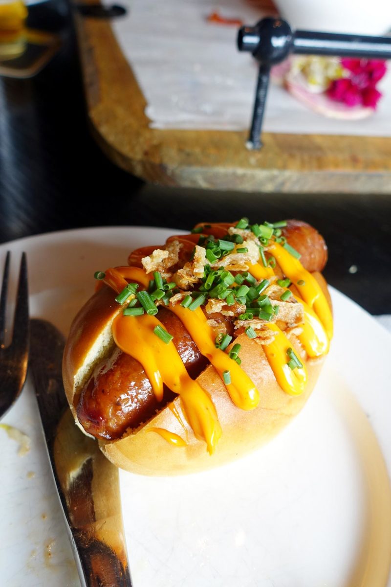 Hoe lekker ziet de mini hotdog eruit? Net zo lekker als ‘ie smaakt. De worst is van Brandt & Levie en die is sappig en de buitenkant lekker knapperig. De chipotle saus is er erg lekker bij en het broodje is zó zacht!