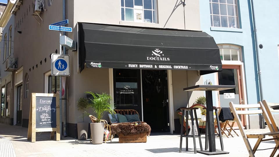 Op een mooi plekje aan het Gasthuisplein in Zwolle, waar voorheen Bar Spies zat, zit sinds april 2017 Dogtails. Het is een grote droom van Rolf die uitkomt: een eigen cocktailbar, gecombineerd met lekkere hotdogs. Het restaurant is klein en knus ingericht en ze werken met veel huisgemaakte en lokale producten en ingrediënten. Zo komen de verschillende soorten worsten van een Zwolse slager en ook de broodjes worden bij een lokale bakkerij gehaald. Sauzen, salades, toppings voor de hotdogs: ze worden zo veel mogelijk zelfgemaakt voor de allerlekkerste hotdogs.