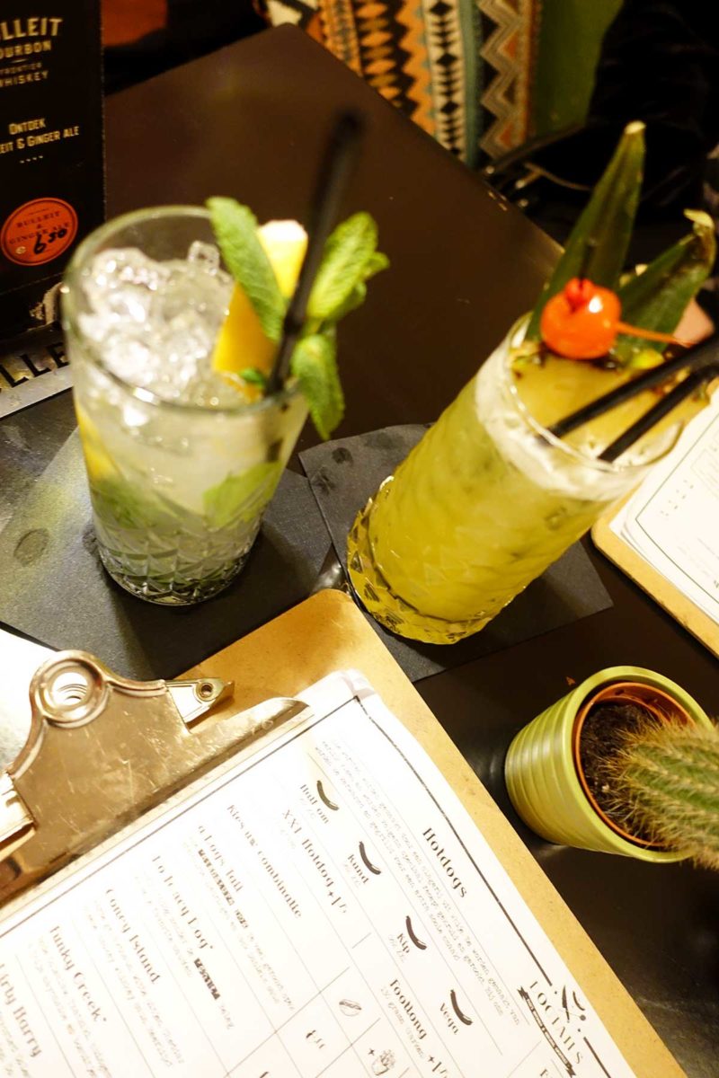En de cocktails? Ik ben zelf niet een heel grote fan van cocktails omdat ik ze snel te zoet en ‘zwaar’ vind – doe mij maar een wijntje of biertje. Het fijne is dat je dat gewoon tegen Rolf kan zeggen en dat hij dan een cocktail maakt die bij je past. Dus niet te zoet, maar juist iets met een bittertje of iets zuurs. Of een cocktail met whiskey en lavendel. Ik heb nog geen favoriet ontdekt, omdat de cocktails die ik dronk allemaal érg lekker waren. Ik moet dus gewoon wat vaker gaan…
