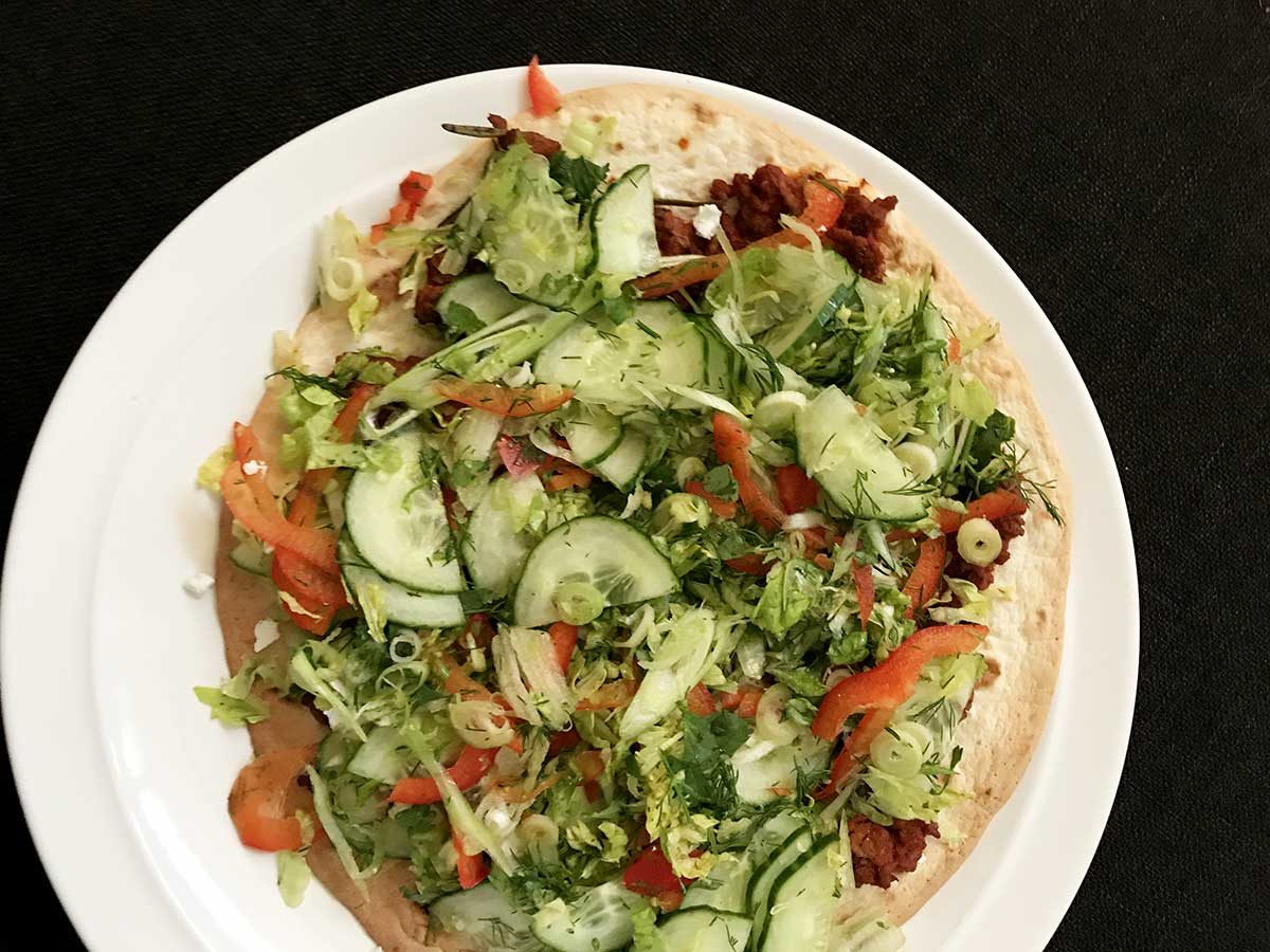 Op zondag eten we een van onze favoriete maaltijden: de Turkse pizza’s van Jamie Oliver. Dit maken we al jaren heel regelmatig – het is zó lekker. Die krokante tortilla, het lekker gekruide gehakt, de zoute feta en de frisse salade vol kruiden: fantastisch. Het recept vind je hier, en het staat écht in een kwartier op tafel.