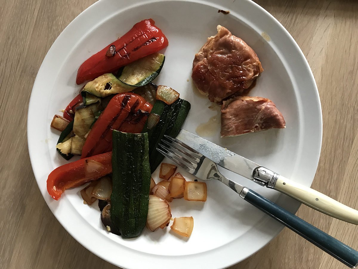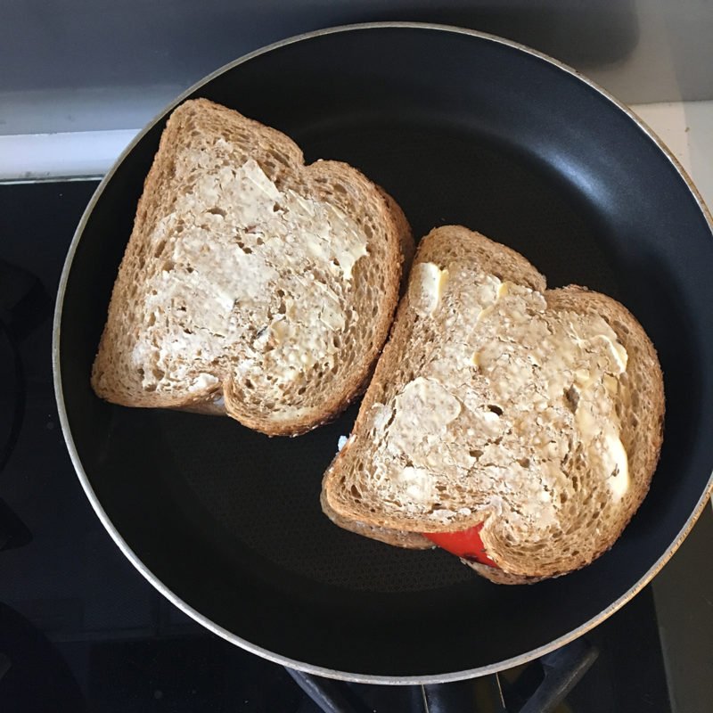Ook gewoon héél lekker: een tosti. Als ik geen zin heb in gedoe maak ik gewoon een normale tosti met ham en kipfilet in het tosti-ijzer. Beetje boter op de buitenkant zodat het brood lekker krokant bakt: hmmm. Met ketchup, of curry.