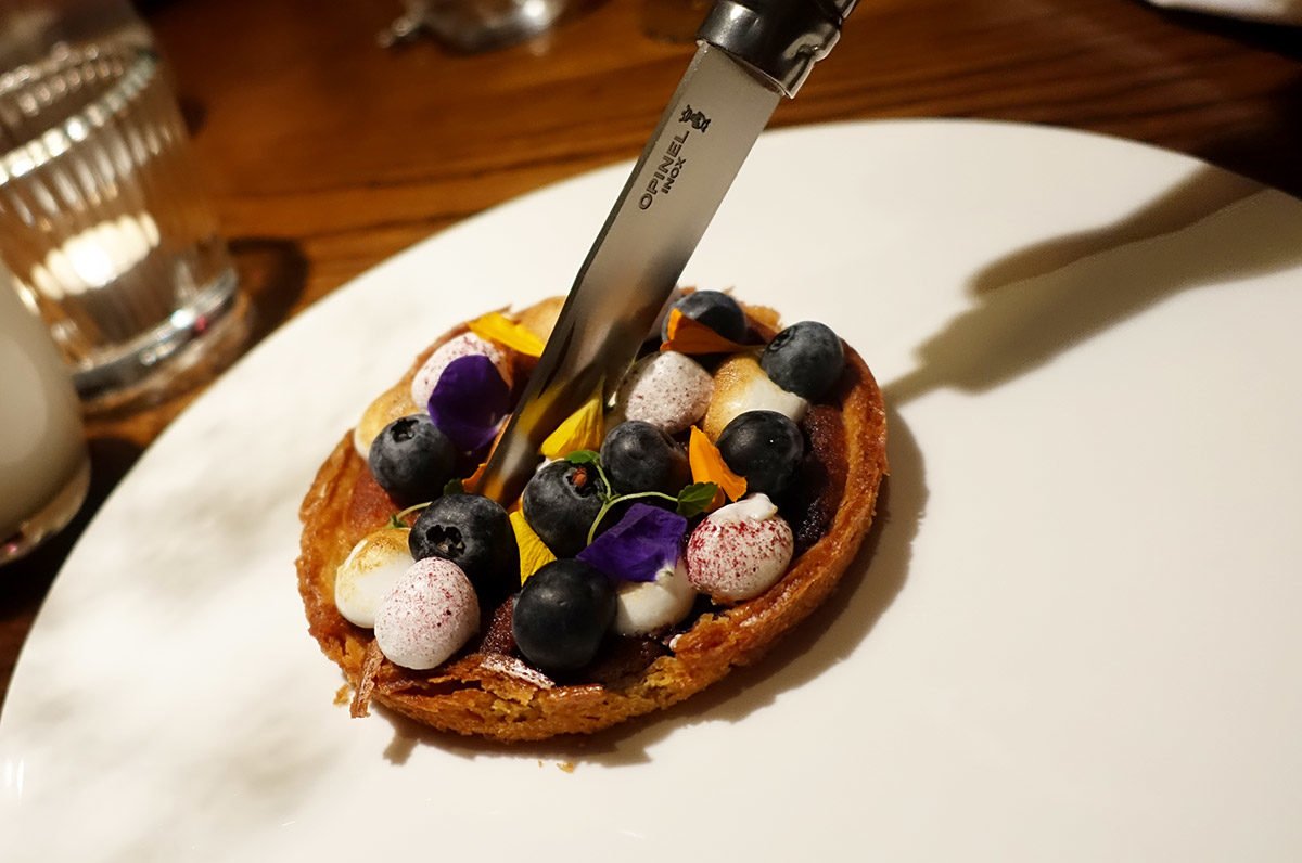 Dit taartje! Niet normaal. Het is een knapperig taartje met zwarte bes. Niet speciaal, maar wel méga lekker.