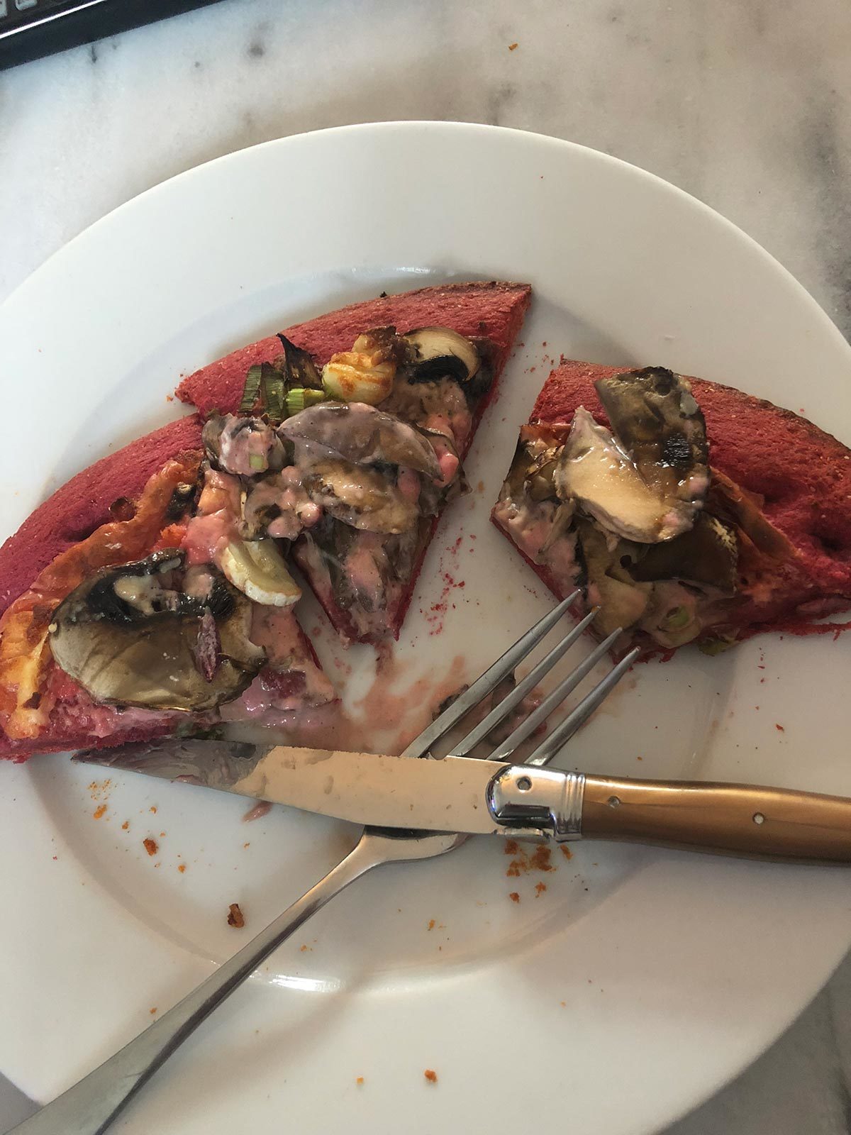 We eten vandaag lekker makkelijk Magioni pizza. Deze probeerde ik een paar jaar geleden eens en ze zijn in ons eetpatroon blijven zitten, haha. Elke week of twee weken eten we wel een keertje Magioni. Deze is favoriet, met een bietenbodem en veel paddenstoelen, maar de Margherita is ook erg lekker. En vegetarisch.