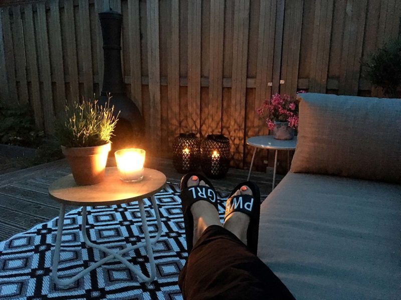In gebruik – je ziet wel waar ik het liefste zit. ’s Avonds vind ik het ook zo gezellig met de kaarsjes! De terrashaard moeten we nog uittesten, ik kan echt niet wachten.