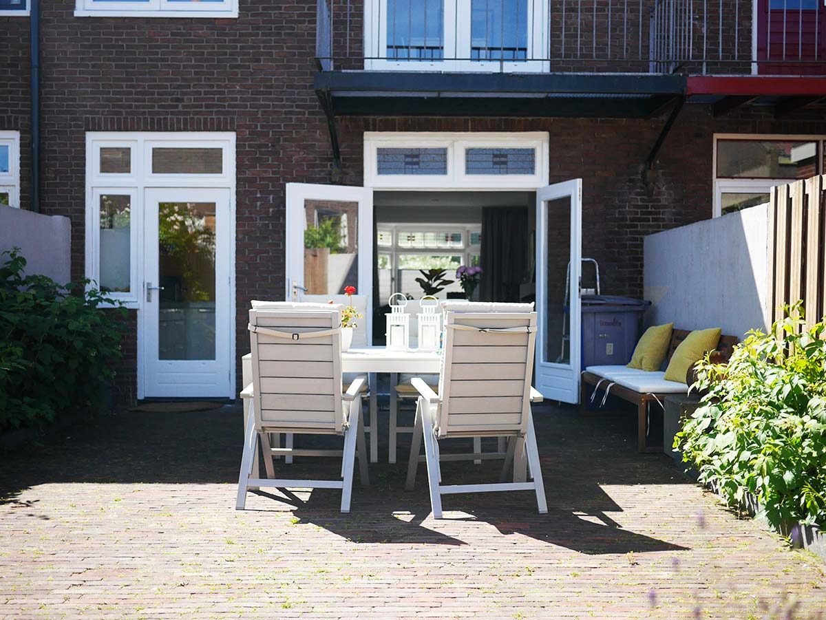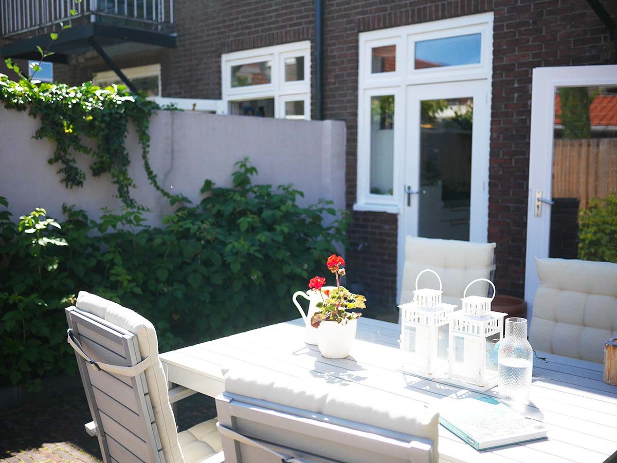 Toen we hier kwamen wonen in augustus 2016 was het eerste wat we deden een tuinset en een tuinbankje kopen. We wilden natuurlijk meteen lekker buiten kunnen zitten, we hebben die zomer ook nog veel mooie dagen gehad. We voelden ons de koning te rijk met onze eigen tuin – en nog steeds. Elke dag voelt het als een ongelooflijke luxe om een tuin te hebben. Zes jaar lang had ik geen buiten, ook geen balkon en in de zomer ging ik vaak naar mijn ouders om daar in de tuin te kunnen zitten. Het terras en het park, daar had ik toch niet altijd zin in. Ik voelde me vaak opgesloten. Dus dit voelt fantastisch. Een eigen tuin!