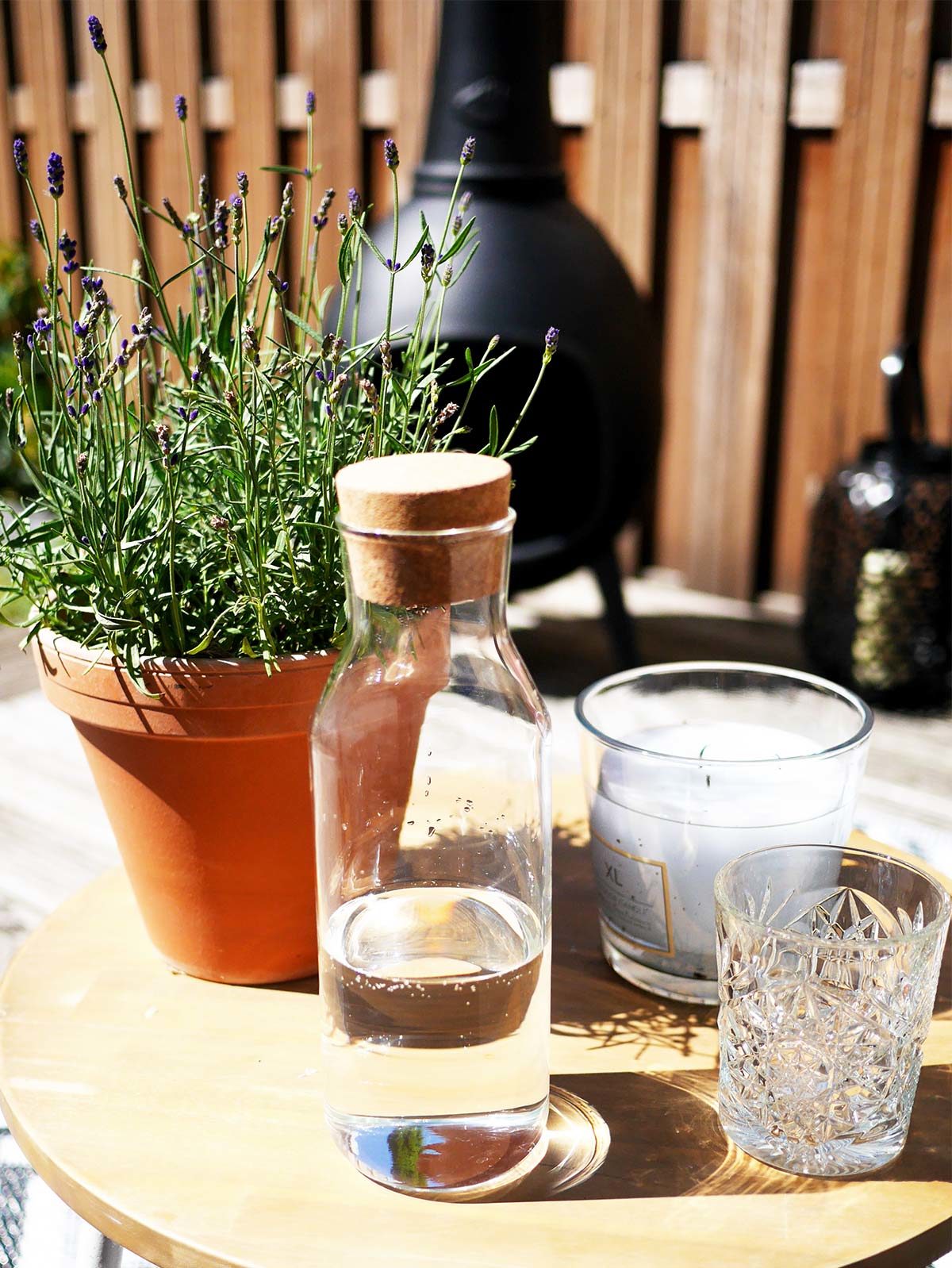 De karaf is van IKEA. Het glas is van Libbey. De kaars is van Action.