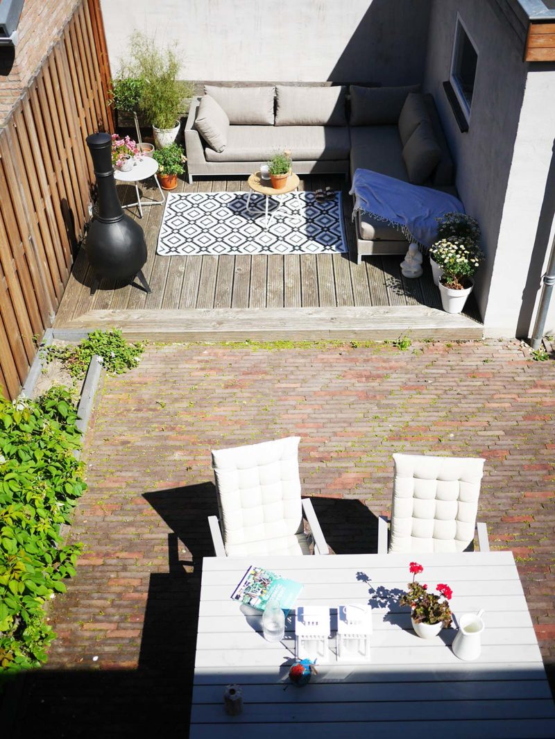 Het is nog niet écht af. Net als ons huis binnen – daarom heb ik ook nog steeds geen binnenkijker in mijn eigen huis gedaan, ik wil wachten tot ik het perfect vind. Ik ben benieuwd of dat moment ooit gaat komen, ha! Maar de tuin wil ik graag laten zien. We willen graag nog iets meer groen, wat meer dingen aan de muren of de schutting, maar ik ben er nu al zó blij mee!