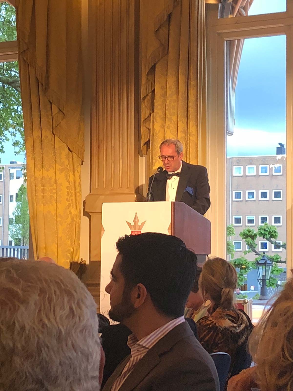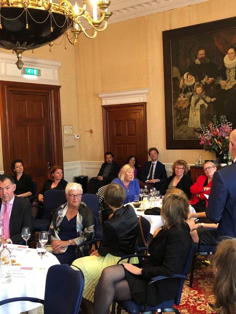 Tegenover mij aan tafel zit Erica van Boven, hoogleraar letterkunde, zij is jurylid dit jaar. We zitten een beetje te kletsen tot ze ineens roept: ‘Ben jij niet de schoondochter van Tjardi?!’ Wat blijkt: is ze een vriendin van mijn schoonmoeder. Niet te geloven hoe toevallig het is dat we bij elkaar aan tafel zitten en dat bij haar het kwartje valt.