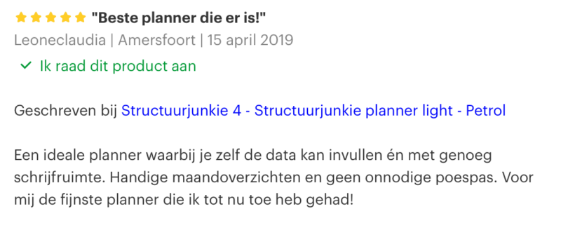 Je kan de nieuwe Structuurjunkie Light Planner hier bestellen voor €19,99, maar je vindt ze natuurlijk ook bij bijvoorbeeld jouw lokale boekhandel. Je kan ze sowieso overal bestellen! De gele en roze planner zijn niet meer te koop. De groene 2019/2020 planner verschijnt half/eind augustus.