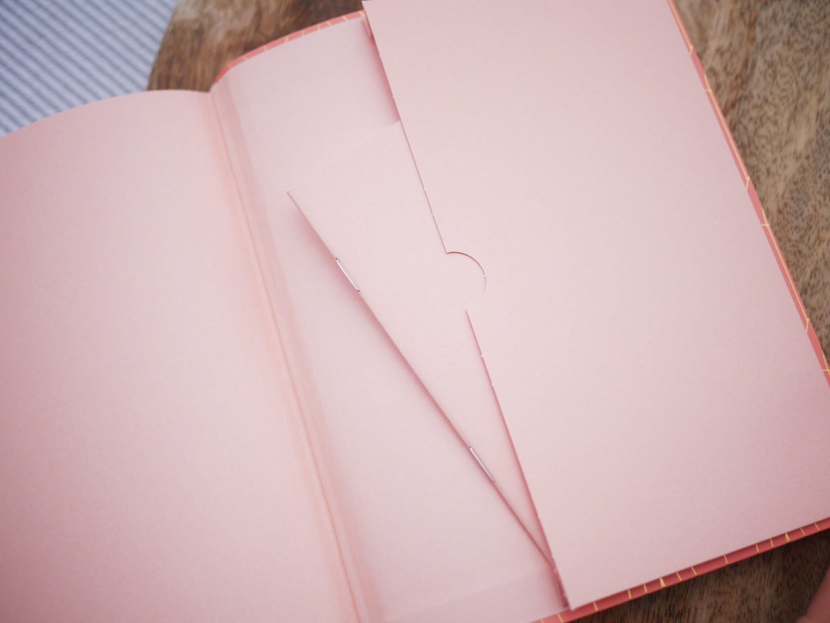 De envelop waar je losse papieren in kan steken, daar zit een cadeautje in: een klein notitieboekje.