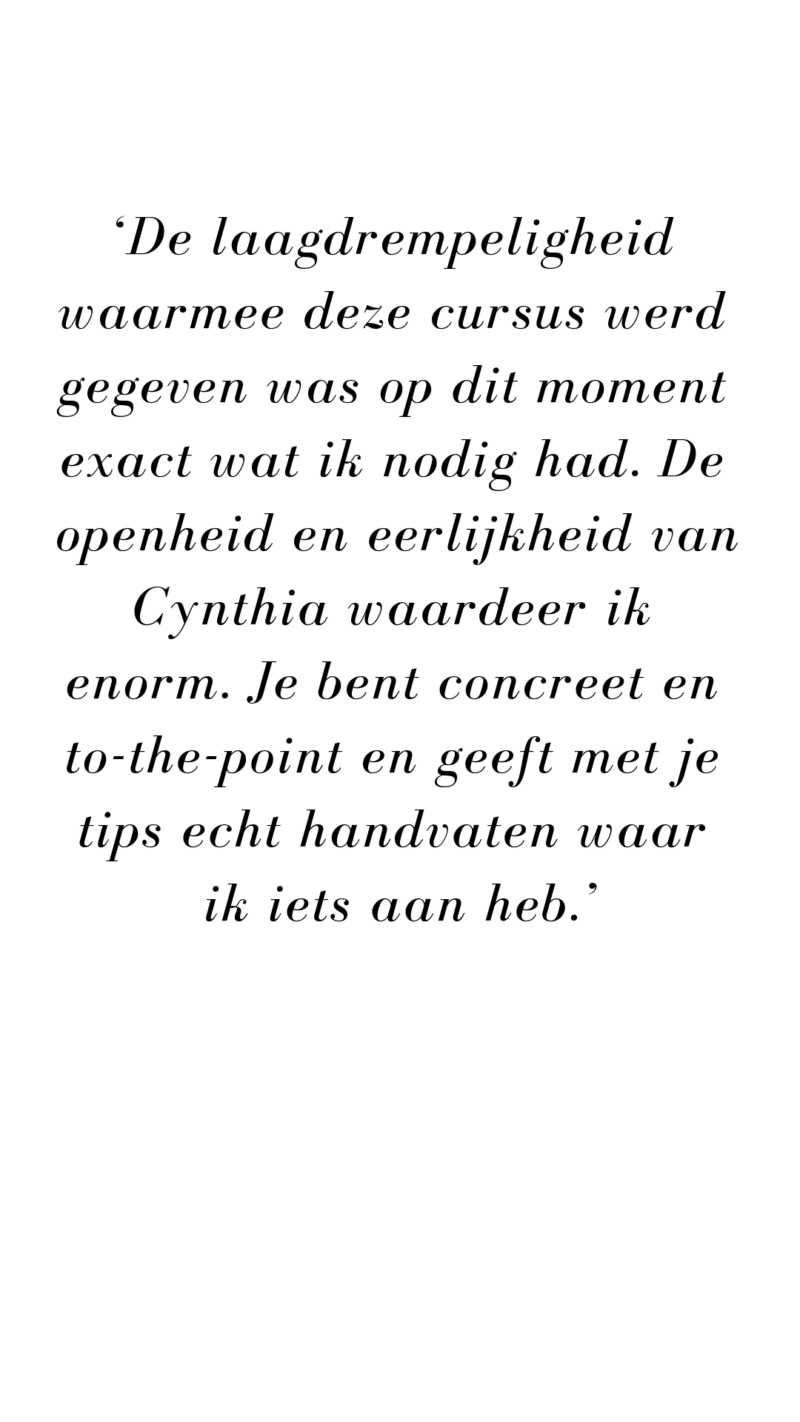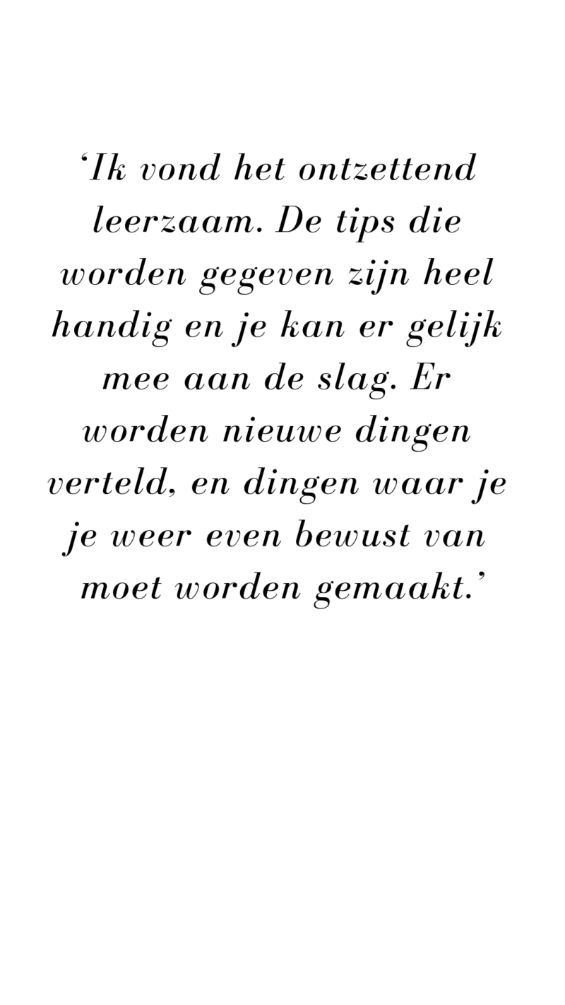 - Na 28 mei blijven alle stories en wallposts op het Instagramaccount staan tot en met 30 juni, zodat je alles nog rustig terug kan kijken. Het is dus geen probleem als je niet van 27 mei tot en met 31 mei met de content aan de slag kan: je kan ook alles later terugkijken. Het is alleen voor de Live Q&A en het stellen van eventuele vragen handig als je de cursus ‘live’ volgt.