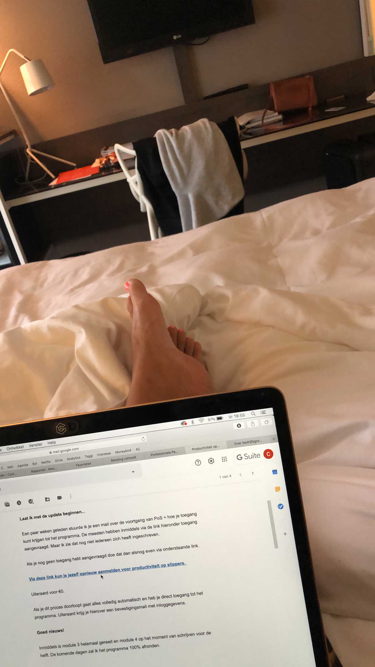 Op dit moment werk ik locatie-onafhankelijk. Als ik mijn laptop en telefoon heb, kan ik overal werken waar ik wil. Niet dat ik nou zo’n digital nomad ben die dan weer vanuit Zuid-Afrika werkt en dan weer vanaf Bali, maar ik vind het wel erg lekker dat ik mijn laptop kan pakken en dat ik dan mijn kantoor bij me heb. Ooit zou ik wel een ‘echt kantoor’ willen, maar voor nu vind ik het heel fijn hoe ik nu werk. En zeker nu ik door de coronacrisis alles online doe en bijna geen offline trainingen, coaching en meetings meer doe is het nog minder locatiegebonden geworden.
