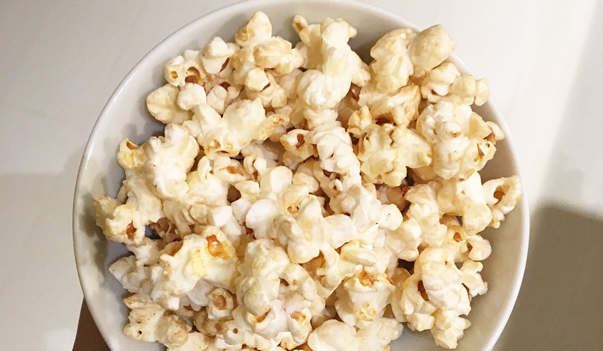 Tussendoor eet ik popcorn, Proper Corn Sweet & Salty, die is vét lekker.