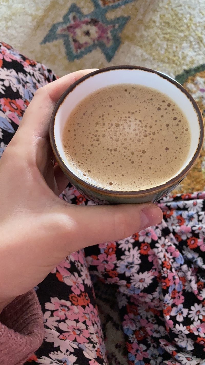 Dan nog kort mijn rustmomenten in een notendop hahaha. Genieten van kopjes koffie en die snack wilde ik je gewoon even meegeven want dat is zó lekker. Een banaan en dan elke keer voor je een hap neemt een beetje pindakaas erop. Deze pindakaas is sowieso heerlijk, met caramel en zeezout.