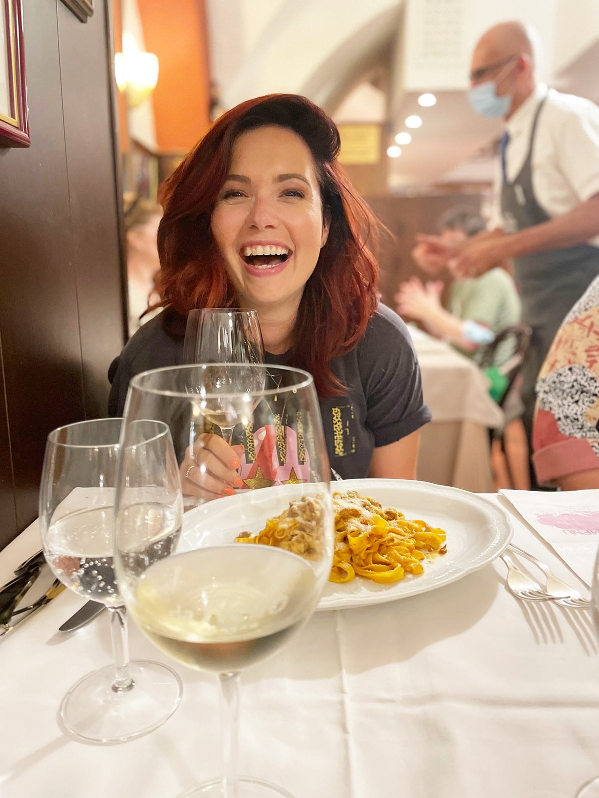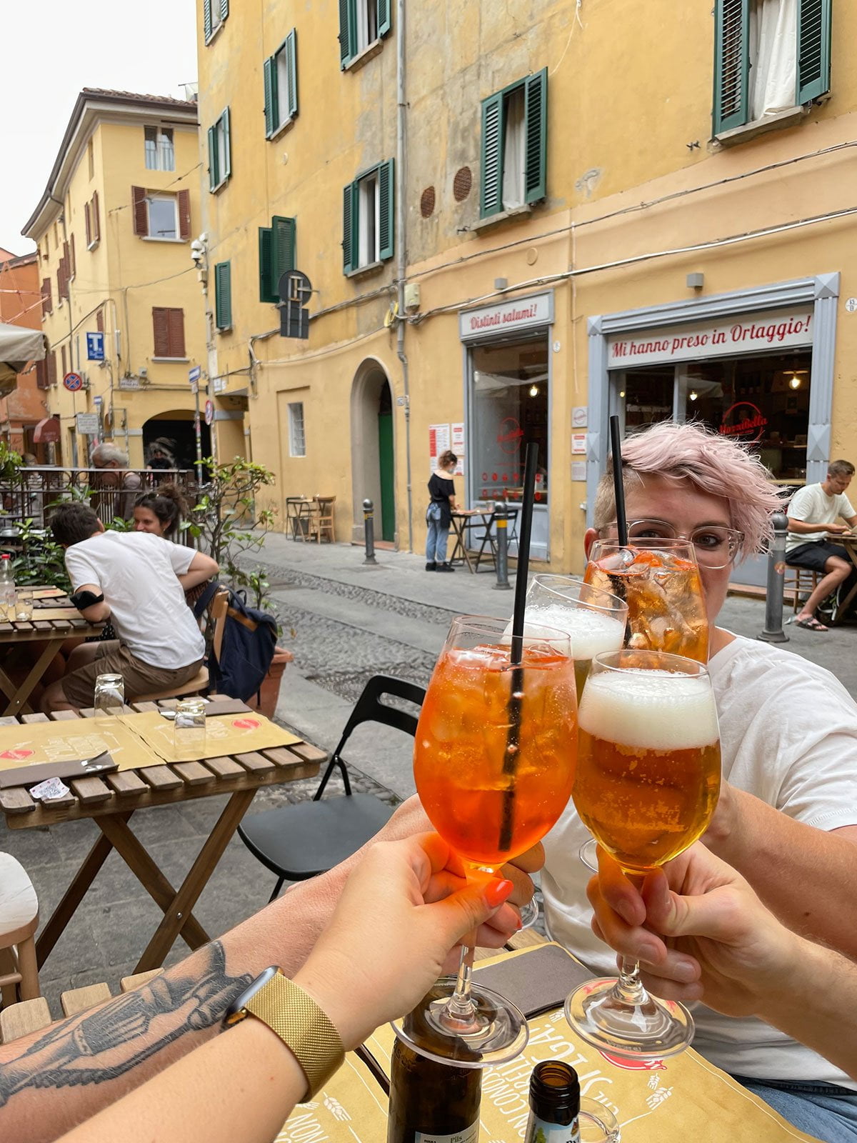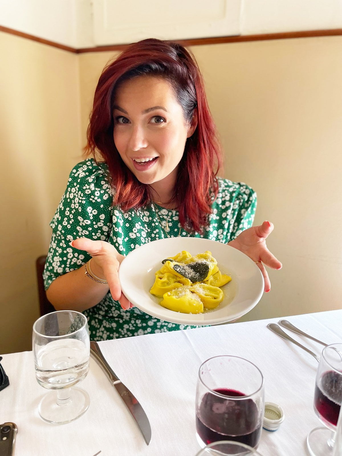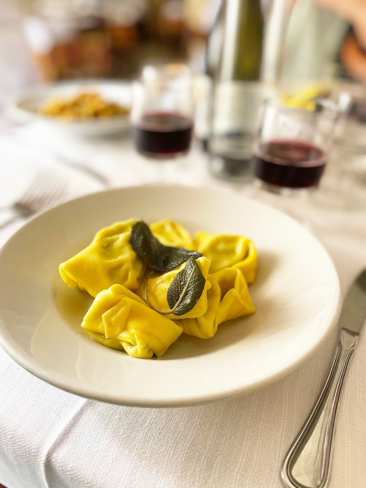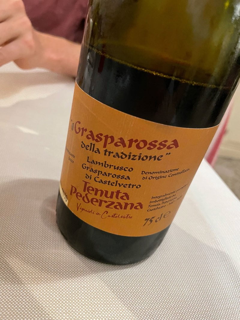 Dat was in Modena in Italië! We gingen naar Trattoria Aldina en daar at ik een waanzinnig lekkere tortelloni gevuld met ricotta en parmezaan, met salieboter. Glas Lambrusco erbij, hemels.