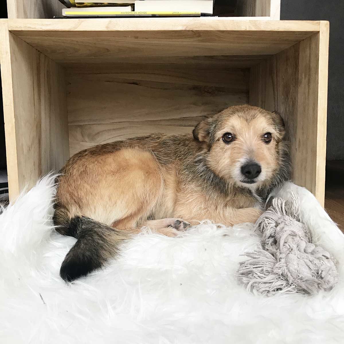 Al jaren ken ik de eigenares van Stichting Houndation en daar zag ik via Facebook altijd veel leuke hondjes voorbij komen. Een paar weken geleden gingen we voor het eerst kennismaken, met Mambo. Na lang twijfelen besloten we met pijn in ons hart niet voor Mambo te gaan. We twijfelden teveel over zijn gedrag en hoe dat zou ontwikkelen: deze schat heeft vijf jaar in het asiel in Bulgarije gezeten. Heel blij zijn we dan ook dat Mambo sinds kort een gouden mandje heeft gevonden. Ik denk dat er een reden is dat we zoveel twijfelden, en op dat gevoel wilden we graag af gaan.
