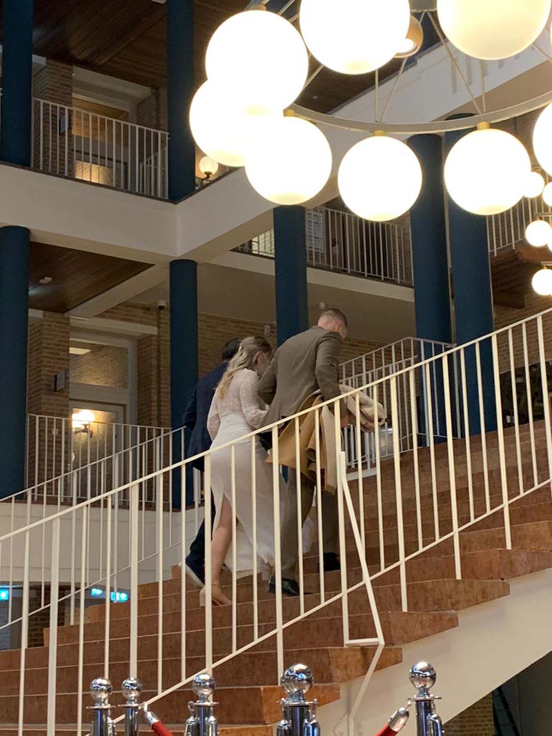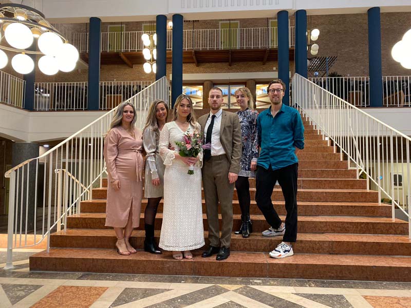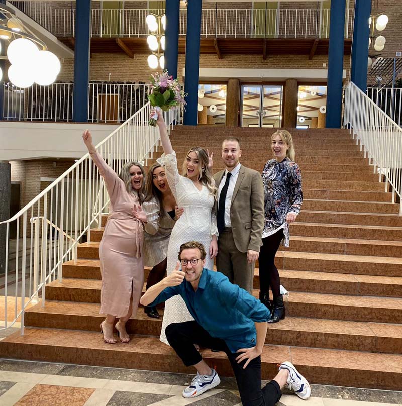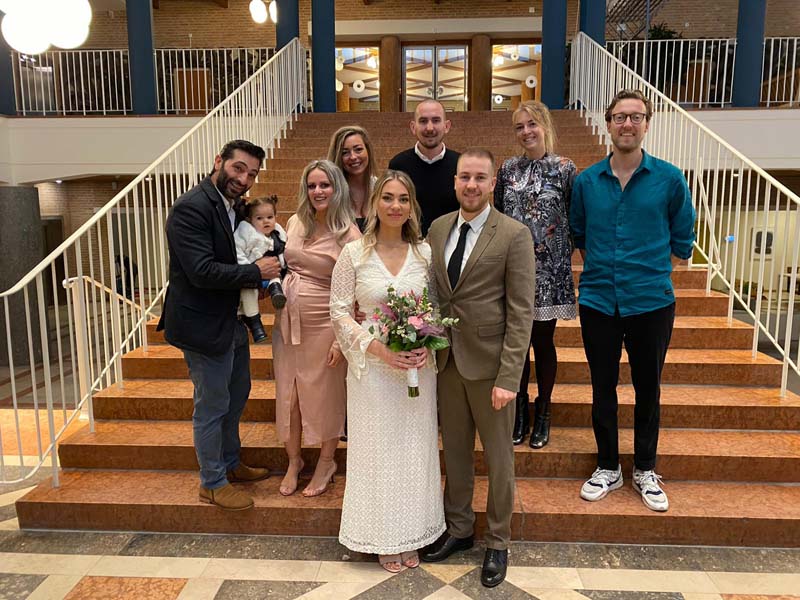 Het was echt het meest slechte weer ooit, dus na het tekenen besloten we nog even wat foto’s te maken met iedereen op de trap van het gemeentehuis. Dan hadden we in ieder geval het moment vastgelegd! Uiteraard hebben we met iedereen apart ook foto’s maar dan krijg je wel heel veel hetzelfde te zien nu haha.