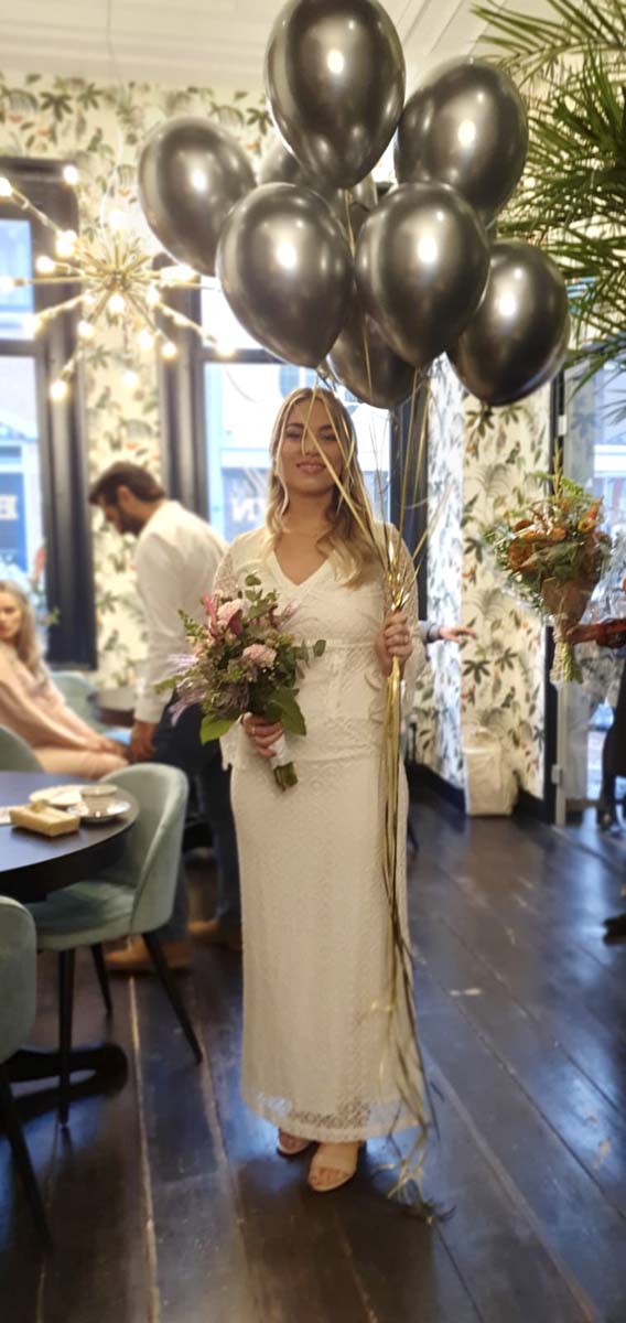 Mijn moeder en Luuks moeder hadden samen ballonnen geregeld, aan elke stoel knoopten we er eentje vast. Mijn moeder wilde ze op laten maar heb haar even duidelijk gemaakt dat we dat uit milieuoverweging toch niet gingen doen haha. Toch stond het wel heel erg leuk, dus daar hebben ze alsnog heel goed nut voor gehad.