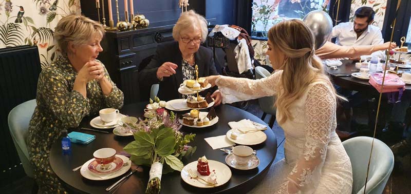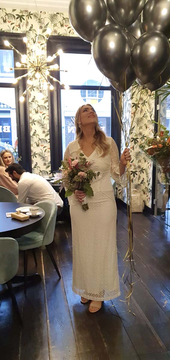 Het begon eigenlijk al de zondag ervoor. Luuk en ik wilden beide deze dag klein houden. Door Corona kun je natuurlijk ook niet zoveel, maar we wilden ook vooral gewicht over houden voor een avondfeest. Dan wisselen we ook pas de ringen uit, anders zijn we bang dat het er niet meer van komt of dat het voor je gevoel minder waarde heeft. Onze vrienden dachten daar anders over en haalden ons zondag afzonderlijk van elkaar op (het was toeval dat het op dezelfde dag was) en ik werd verrast door een high tea en Luuk kreeg een leuke bbq. Hierdoor begon het ineens heel ‘echt’ te voelen! Een echt vrijgezellen feest met drankjes en dansjes etc., dat is nu gewoon niet mogelijk dus dat ze dit zo hadden geregeld was echt onwijs leuk. Ik voelde me heel geliefd en speciaal ook vooral!