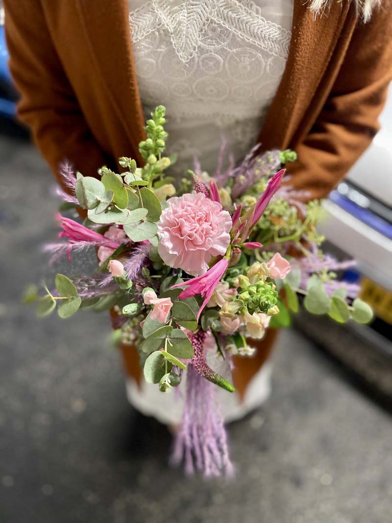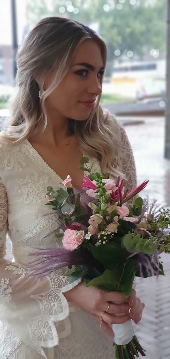 De bloemen kreeg ik van mijn getuigen; mijn zusje Elise en bestie Diana. Ik had zelf geen bloemen in gedachten voor deze dag, maar achteraf maakten ze de look wel echt helemaal af.