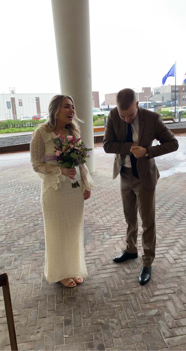 We konden nog dagen nagenieten van stukjes bruidstaart haha. De dag voelde uiteindelijk zoveel meer speciaal en bijzonder dan we hadden verwacht, en dat kwam echt doordat mensen om ons heen zoveel extra dingen deden om de dag uit te bouwen tot wat het is geworden. Uiteindelijk ben ik daar ontzettend blij mee en heel erg dankbaar ook vooral dat we zoveel lieve mensen om ons heen hebben die gek met ons zijn. Dat deze dag zo geslaagd was is voor ons alleen maar motivatie om volgend jaar écht door te laten gaan. Ik zeg volgend jaar, maar we zijn natuurlijk afhankelijk van Corona. We gaan zien wanneer het kan, maar we gaan het zeker doen. Ook krijgen we natuurlijk ergens daar tussen in nog een baby als alles goed gaat, dus dat stukje willen we ook even aankijken. Hoe dat voelt, en waar we dan behoefte aan hebben. Eigenlijk vind ik zo in twee delen trouwen best wel geniaal. In ons geval was het grootste nadeel dat onze vrienden niet bij dit eerste gedeelte konden zijn, afgezien van de getuigen dan. Ook omdat iedereen wel zoveel moeite deed om alles zo speciaal voor ons te maken.