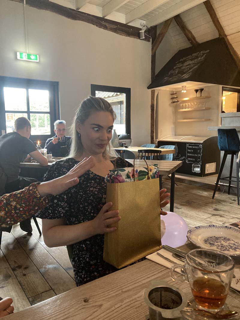 We zaten in hun private room, waardoor we met onze 15 man totaal echt goed afstand konden houden. We zaten aan aparte tafels en ja, ik zal niet liegen, ik ben ook wel even aan elke tafel gaan zitten. Toch hebben we niet geknuffeld, wat vooral voor de moeders heel lastig was, niet gekust (alleen met elkaar) en zeker ook wel afstand gehouden. We hebben ook wat kwetsbare mensen in de groep zitten die we ook willen beschermen. Dat ging heel erg goed, al is het heel gek dat je eigen moeder je wil feliciteren en dat dat dan zonder knuffel gaat.