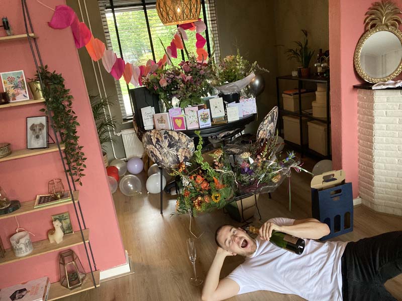 Toen we thuis kwamen lag er echt een berg kaartjes voor ons in de brievenbus die dagen erna maar bleven komen. Ik heb nog nooit zoveel bloemen en kaarten gehad, dat voelt ook zo bijzonder! We kregen ook cadeautjes (totaal niet verwacht) en de champagne vult de kelder inmiddels goed op haha.