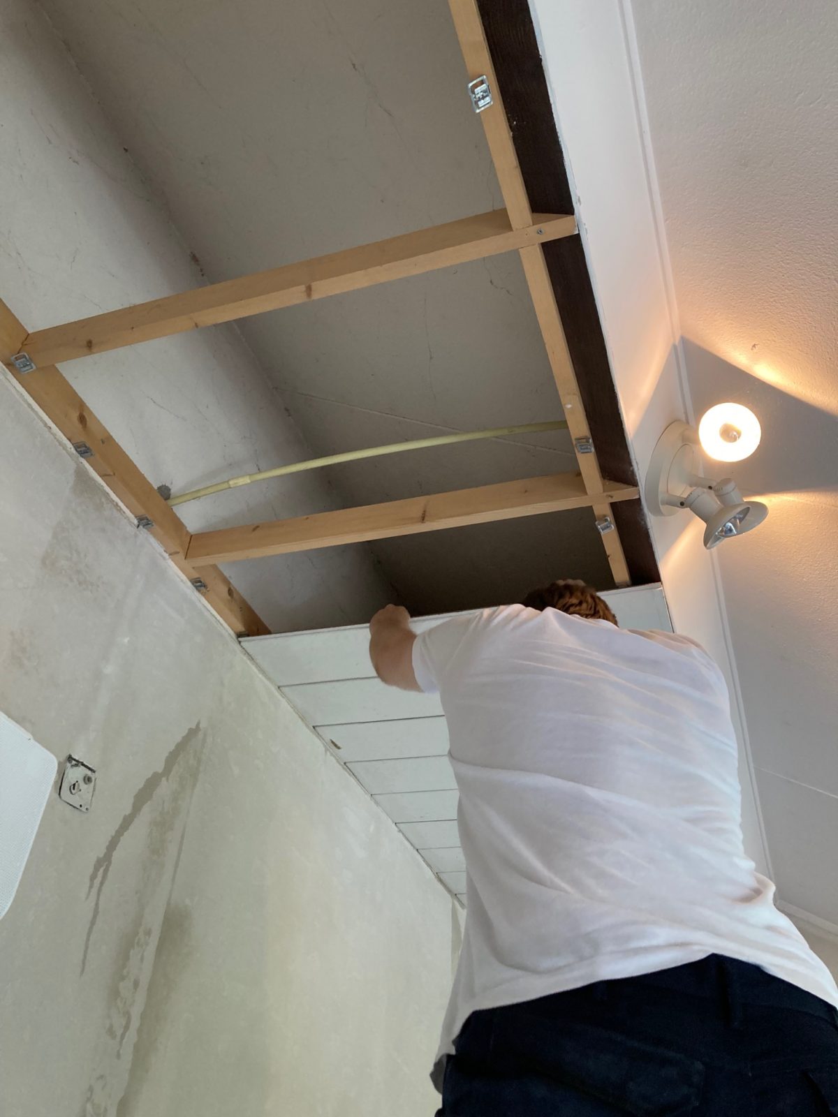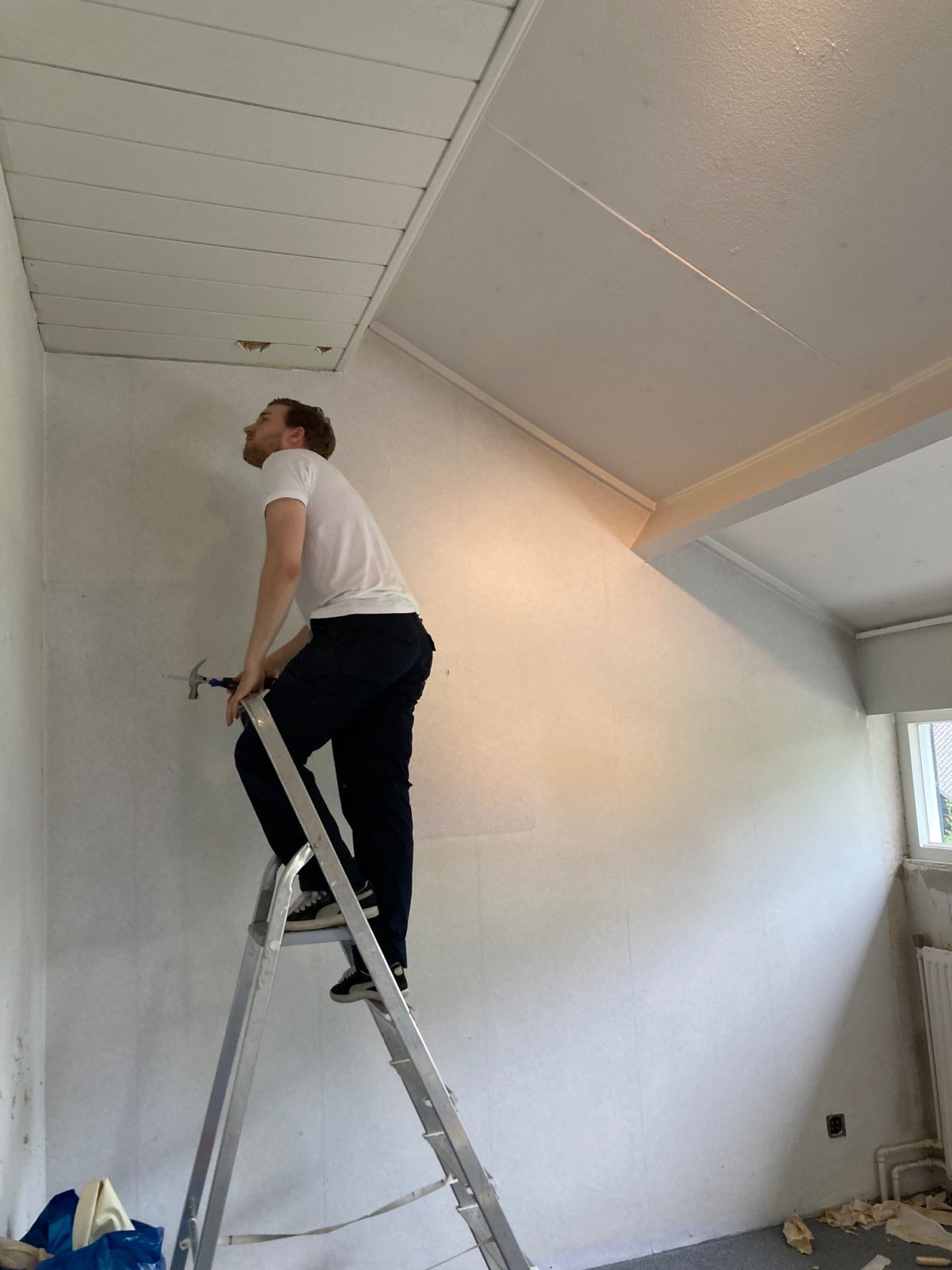 In onze slaapkamer was een stuk van het schuine dak afgetimmerd, we namen een risico en besloten het open te breken.