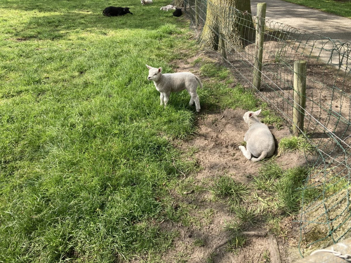 Mijn schoonzusje woont prachtig achteraf en haar tuin grenst aan het weiland van de buurman die elk jaar lammetjes heeft! Dit zijn al wel lekkere dikkies, de kleinsten liepen te ver weg. Mijn schoonzusje zelf heeft voor het eerst kuikentjes, ook zo genieten want het is zó schattig.