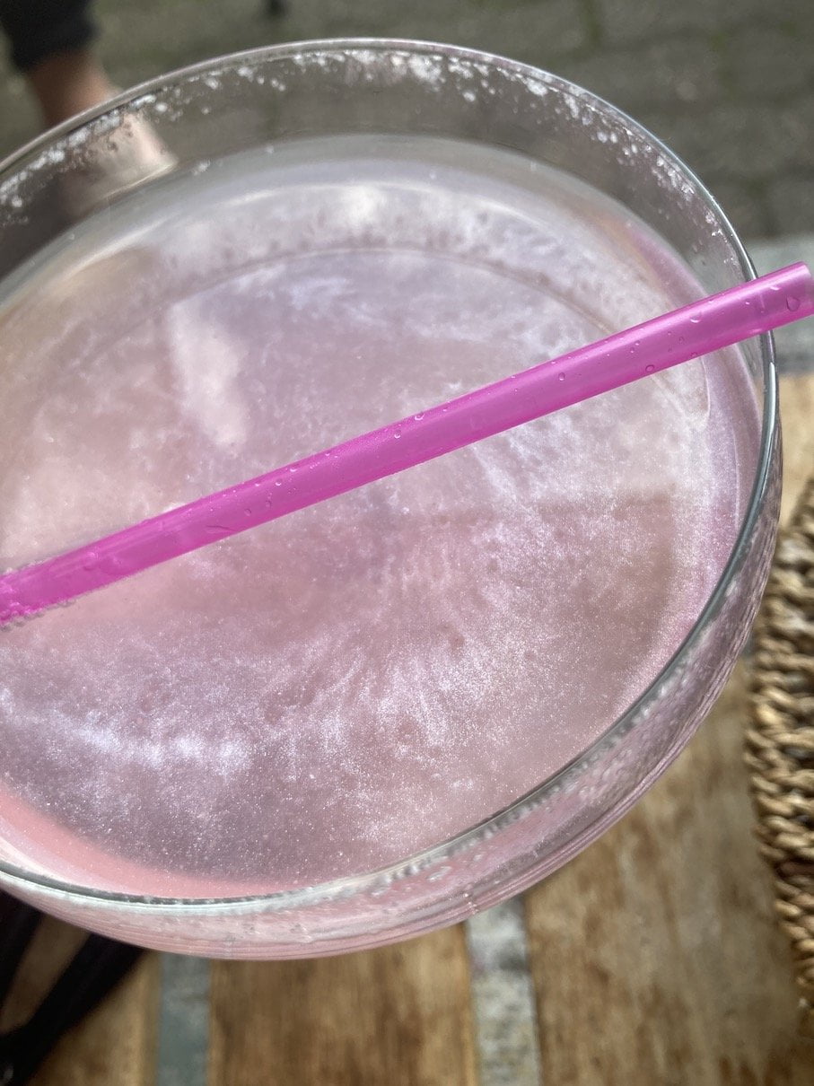 Ik had ook glittercocktails! Albert Heijn heeft een hele lekkere rozenlimonade, die meng ik graag met tonic. Ik had ooit van mijn zusje glitterpoedertjes gekregen die je door je drankje kon mengen en deze probeerde ik nu even uit. Ziet er geweldig uit maar of het gezond is, dat vraag ik me af haha.