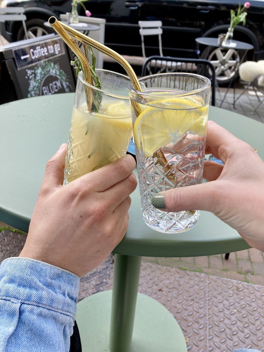 Bij de Houtmaat in Hengelo zit nu Woods, een super leuke plek aan het water waar ze een overwegend vegan kaart hebben. We waren er op een zondagmiddag en ik ging ervoor. Ik nam een pornstar martini, méga lekker, en als toetje had ik ook nog een vegan donut. Helemaal all out!
