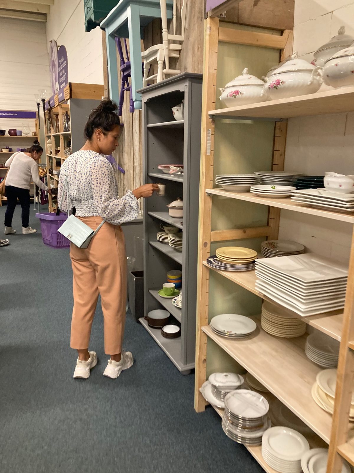 Vriendin Jen nam me mee op mijn eerste uitje het huis uit na anderhalve week. Uiteraard de kringloop. Daar schrok ik nog wel van mijn bewegingsvrijheid door de wondjes op mijn buik, maar kort daarna ging dat onwijs veel beter.