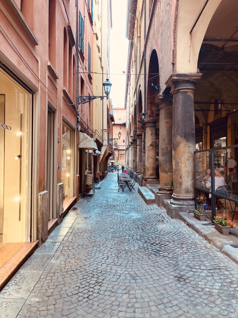 De tweede dag zetten we onze koers voort richting Assisi. Ik zag op de route dat we langs Bologna kwamen en met Cynthia’s trip vers in mijn geheugen besloten we dat dit de perfecte plek zou zijn voor een heerlijke Italiaanse lunch. Ik navigeerde naar een druk horeca straatje, zochten een parkeerplaats in de buurt en genoten er enorm van.