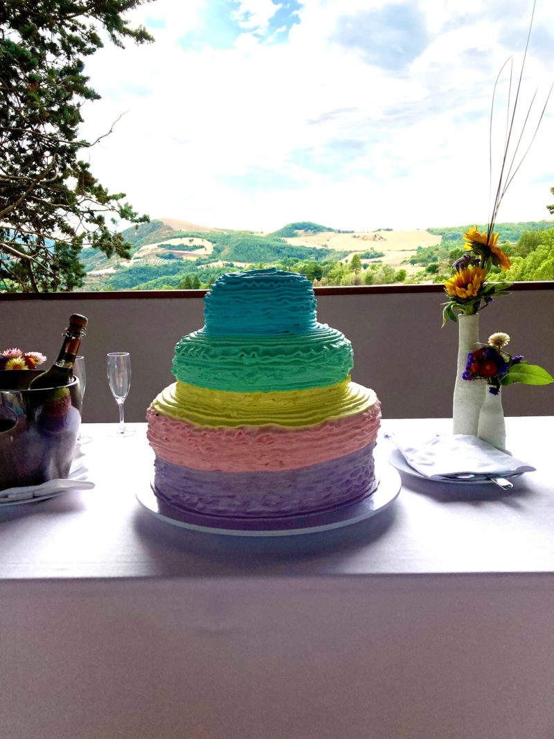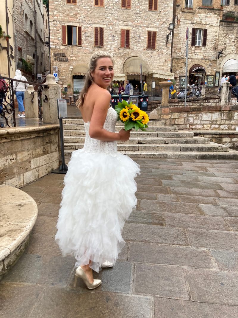 Ze hadden een complete b&b afgehuurd waar alles plaats vond. Een geweldige plek boven op een berg net buiten Assisi. We/ze hadden wel wat pech met het weer. Het is normaal áltijd mooi weer hier, maar nu viel er af en toe een bui. Het heeft de pret niet mogen drukken maar ik vond het toch wel onwijs sneu voor Neelke en Chris. Ga je in Italië trouwen krijg je dat! Nogmaals, het heeft écht niet afgedaan van de prachtige bruiloft!