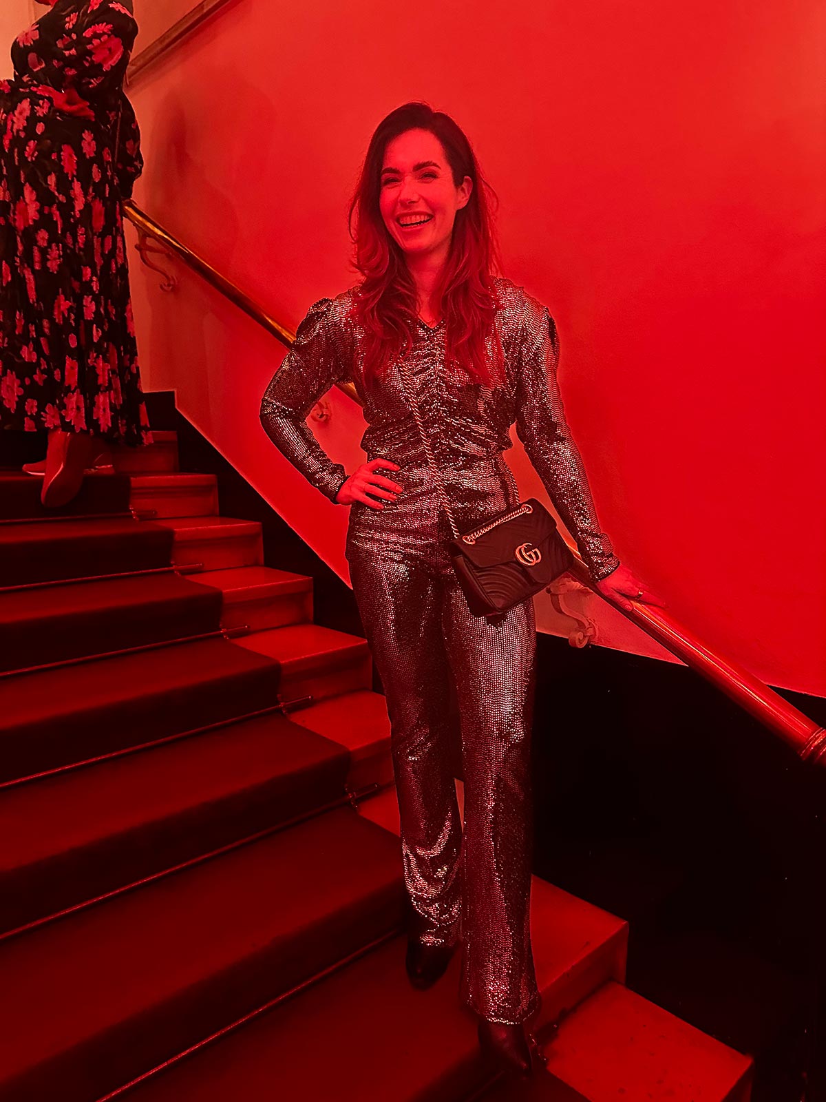 Mijn outfit! Het pak is van Nikkie, wel een paar jaar oud, dus niet meer te koop. De dresscode was ‘een vleugje goud’.