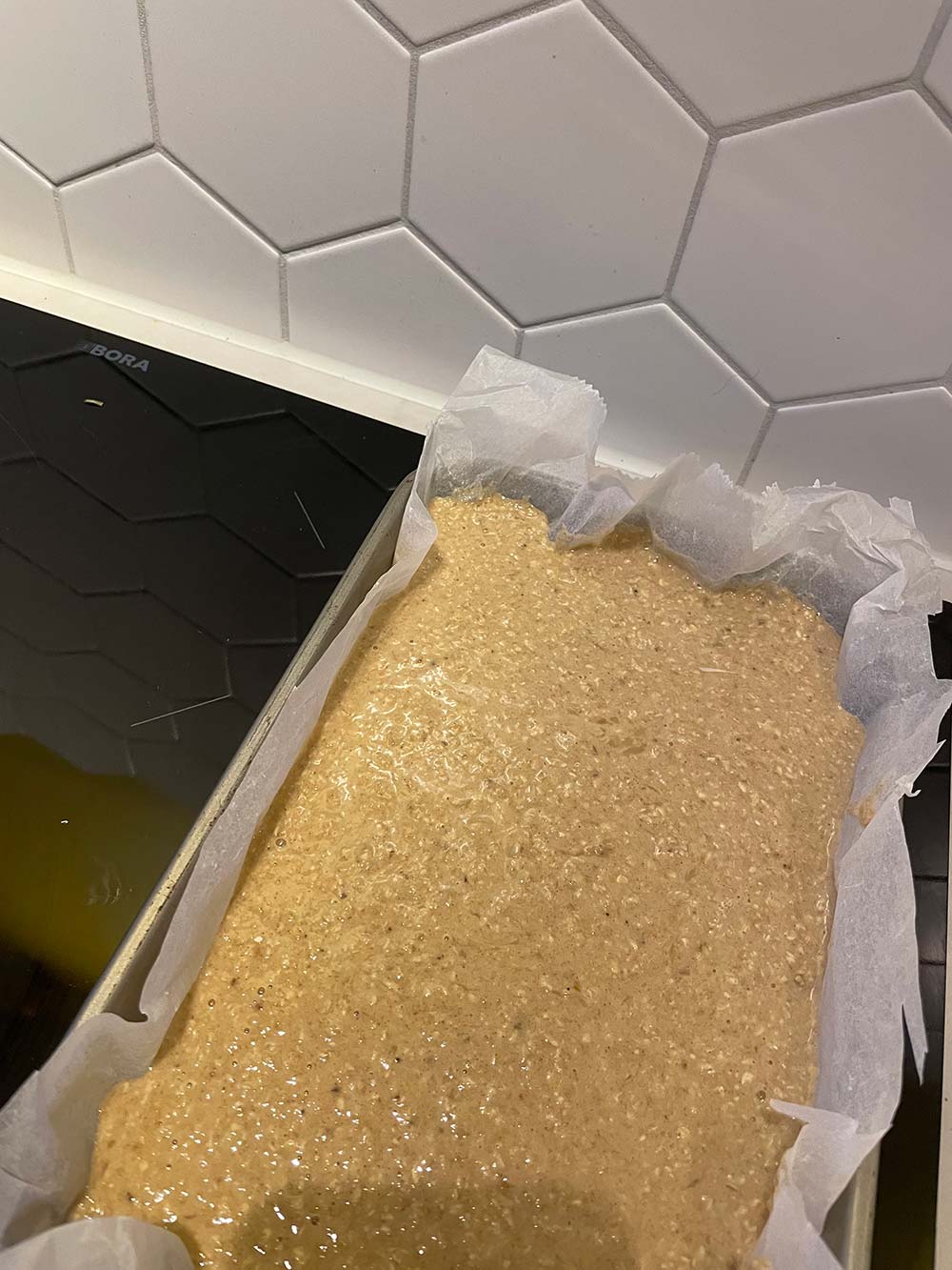 Bananenbrood bakken. Ziet er altijd zo vies uit, haha.