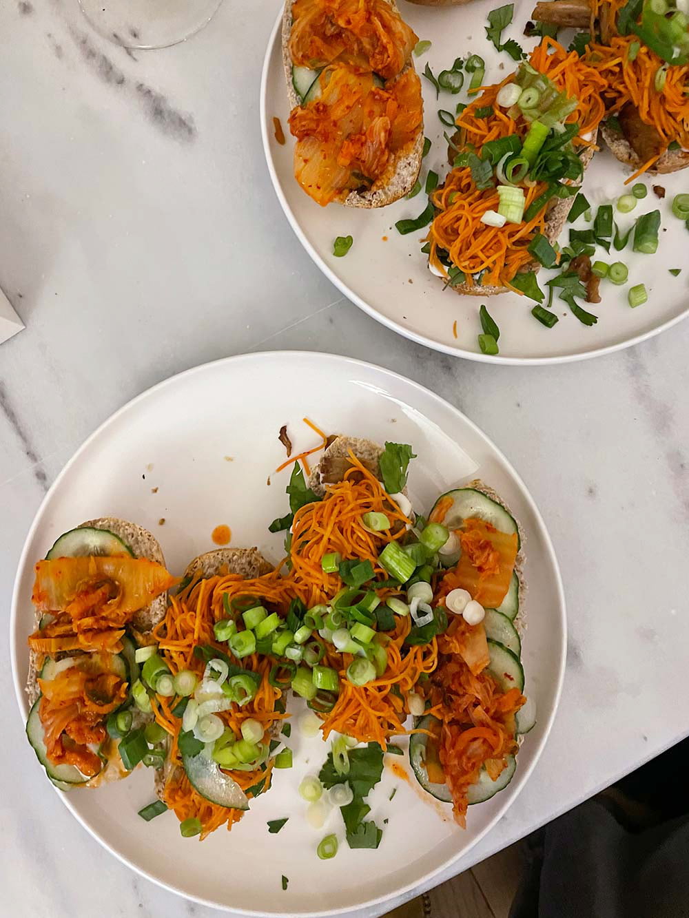 Lunch: toast met kipfilet, eitje en huttenkase.
