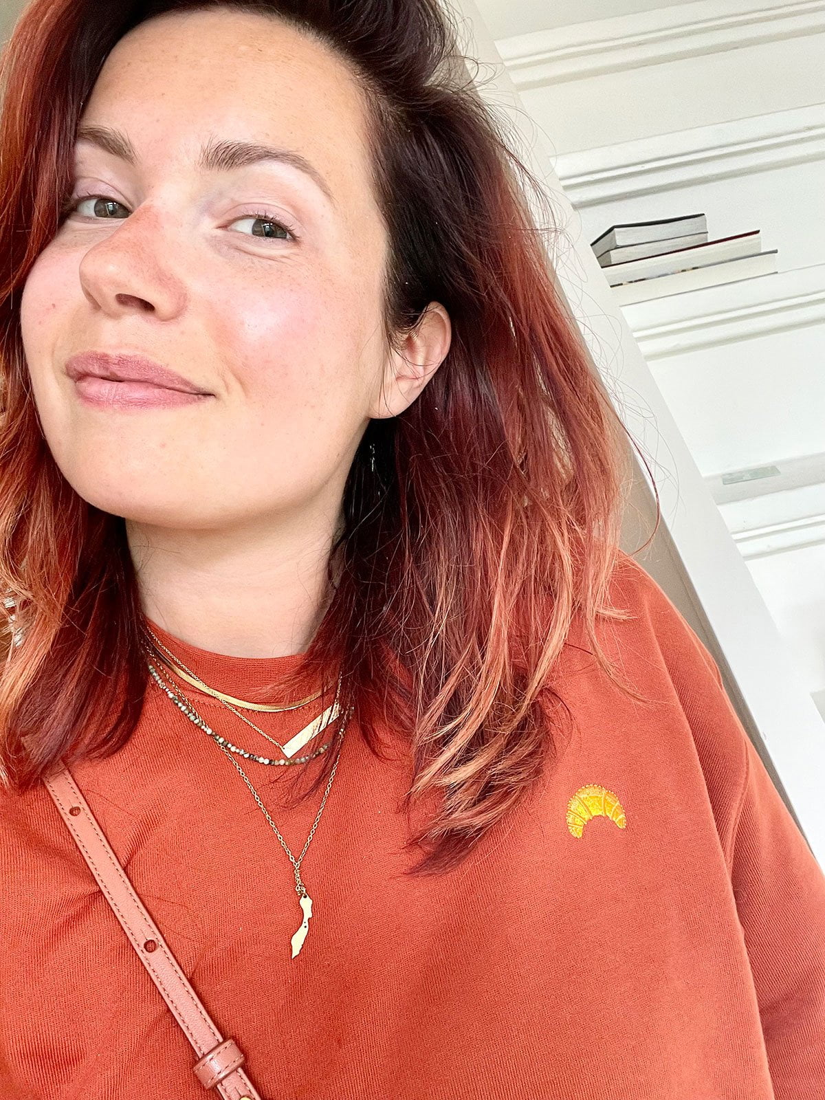 Lekker ton sur ton. De trui is van A-dam, ik heb het t-shirt met de croissant ook van hun.
